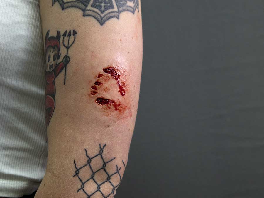 Ich habe diese Bisswunde für eine Horrofilmparty bestellt. Sie war der absolute Hingucker und erfüllt definitiv ihren Zweck! Sehr zu empfehlen.