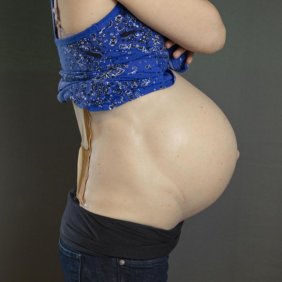 Unsere Schwangerenbäuche sind wie alle unsere FX Produkte handgefertigt und qualitativ anspruchsvoll. Der gut gepolsterte Tragegurt ermöglicht ein bequemes An- und Ausziehen und trägt somit, trotz des manchmal großen Gewichtes der Bäuche, stets zu einem entspannten Drehtag bei. Die hyperrealistische Bemalung und Textur der Silikonoberfläche, lässt auch Aufnahmen aus großer Nähe zu, zb. bei einer Ultraschall Untersuchung oder währrend einer Geburtsszene.